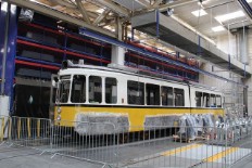 Und der GT4 471 mit Kunstlederseitzen bei der Revision. Die Karrosserie ist bereits ausgebessert und wartet auf die Lackierung.