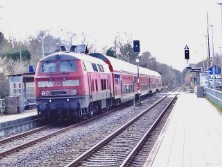 Bild oben, der IC von Lübeck rollt auf der eingleisigen Strecke in Grevesmühlen ein. 218 366 wurde vor die silberne 101 gespannt und wartet in Grevesmühlen den Gegenzug ab.