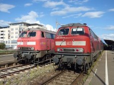 Die 218 aus Lindau kommend wartet den RE nach Lindau ab, meist eine Triebwagengarnitur der BR 628.