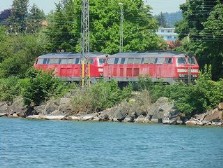 Am 6.Juni 2013 stehen die beiden 218 auf dem Damm in Lindau und warten bis der EC nach München eingefahren ist aus Zurüch.